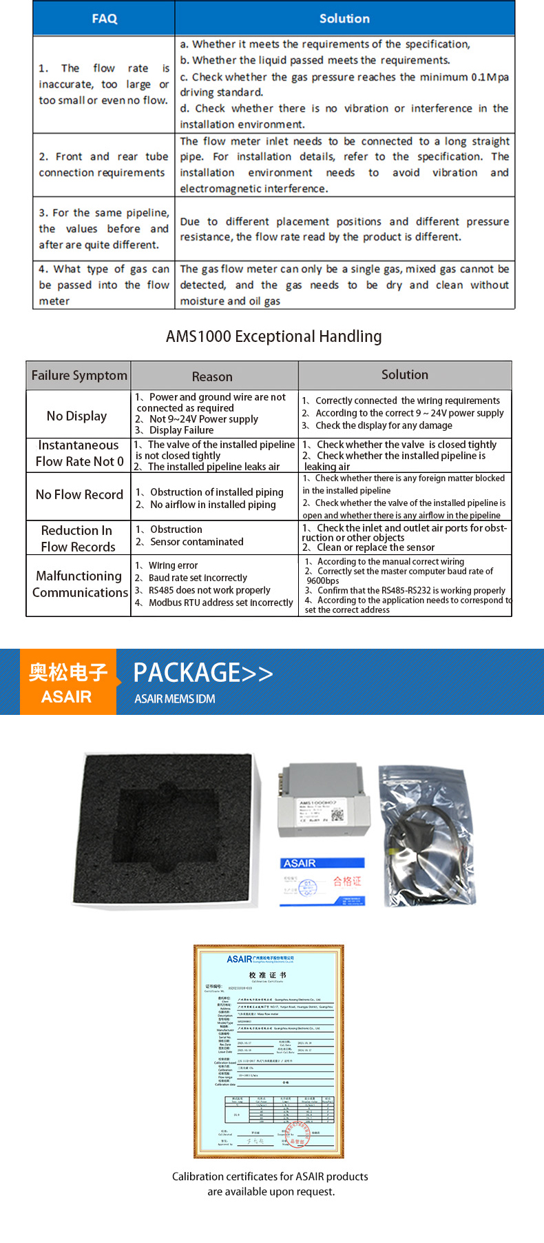 The measuring range, accuracy, repeatability, response time, etc. of AMS1000 are all calibrated before leaving the factory.