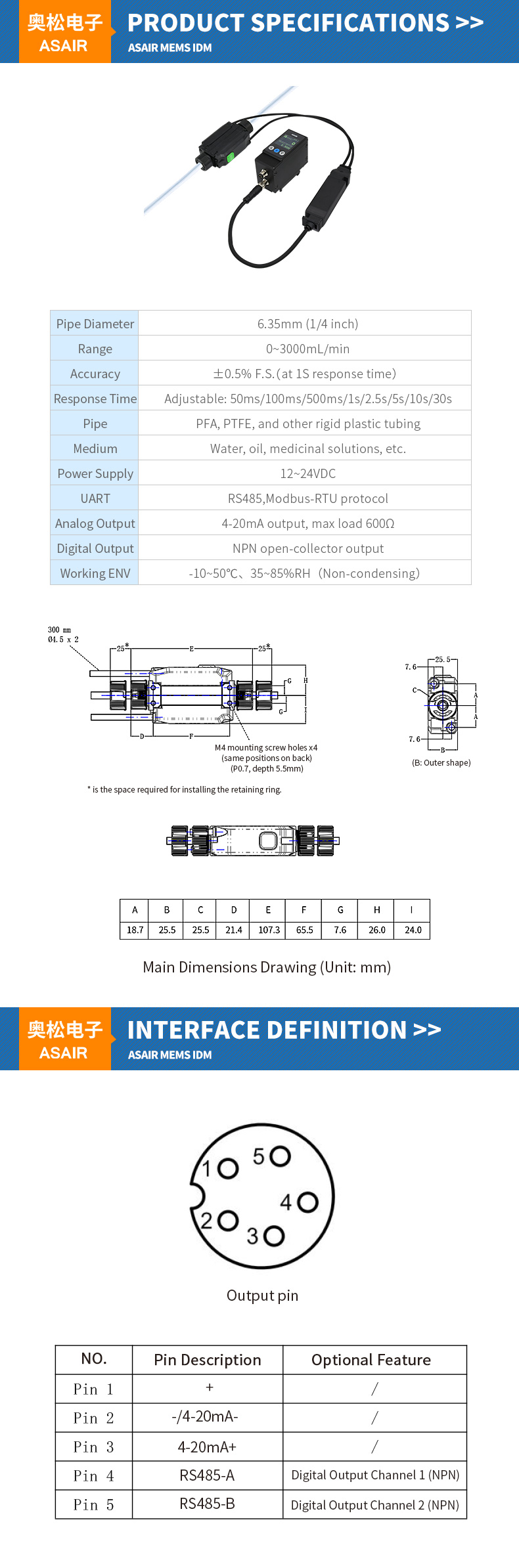 The AFU2 ultrasonic liquid flow sensor boasts a wide range of applications. Designed specifically for small-diameter pipelines, this measurement instrument features a robust housing and compact structure. Its key advantages include non-invasive installation, low maintenance costs, and ease of setup. It is primarily used for flow monitoring in industries such as semiconductor manufacturing, pharmaceutical production, chemical processing, cleaning services, and beverage production.