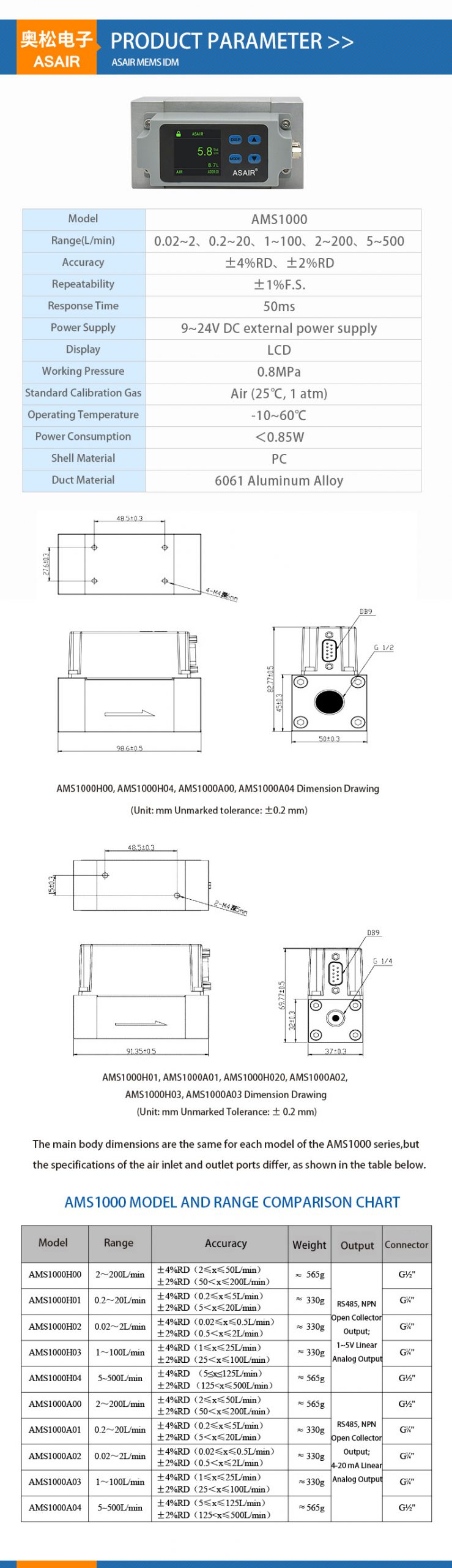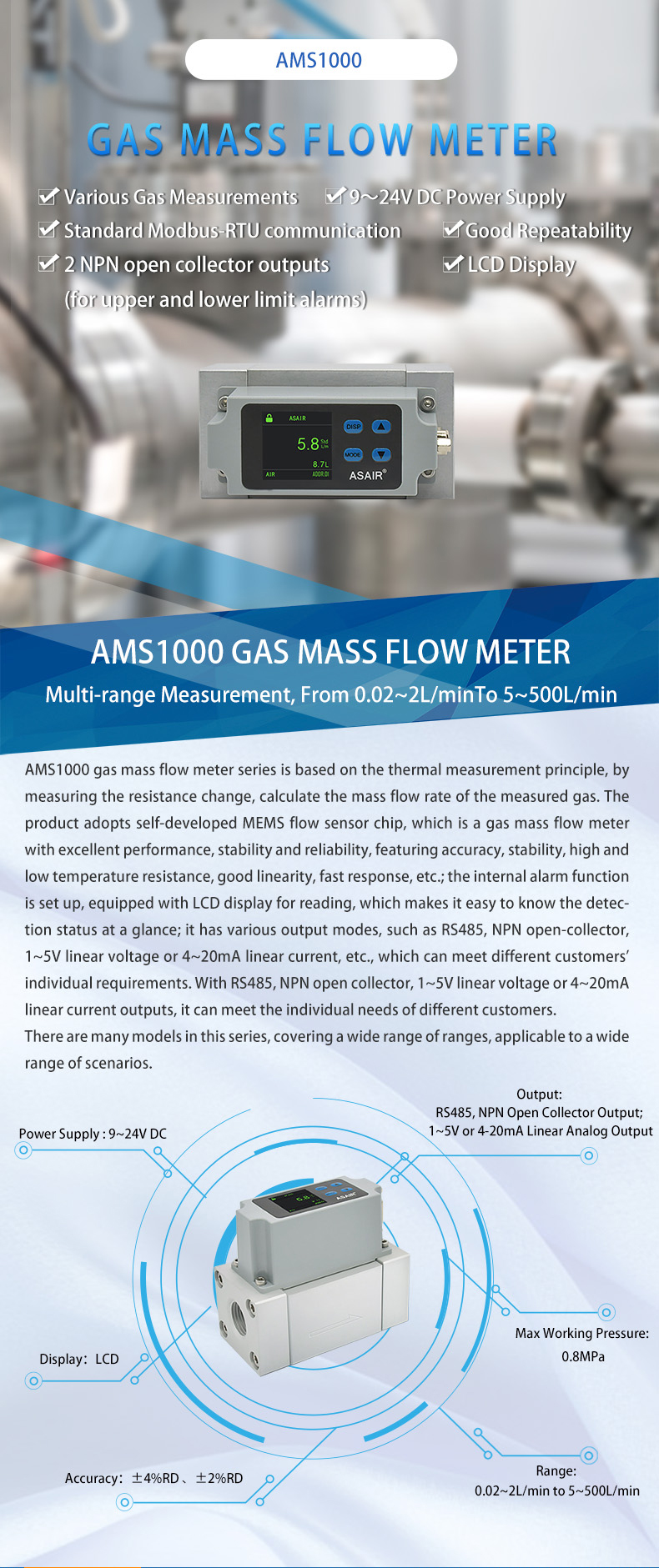 The measuring range, accuracy, repeatability, response time, etc. of AMS1000 are all calibrated before leaving the factory.