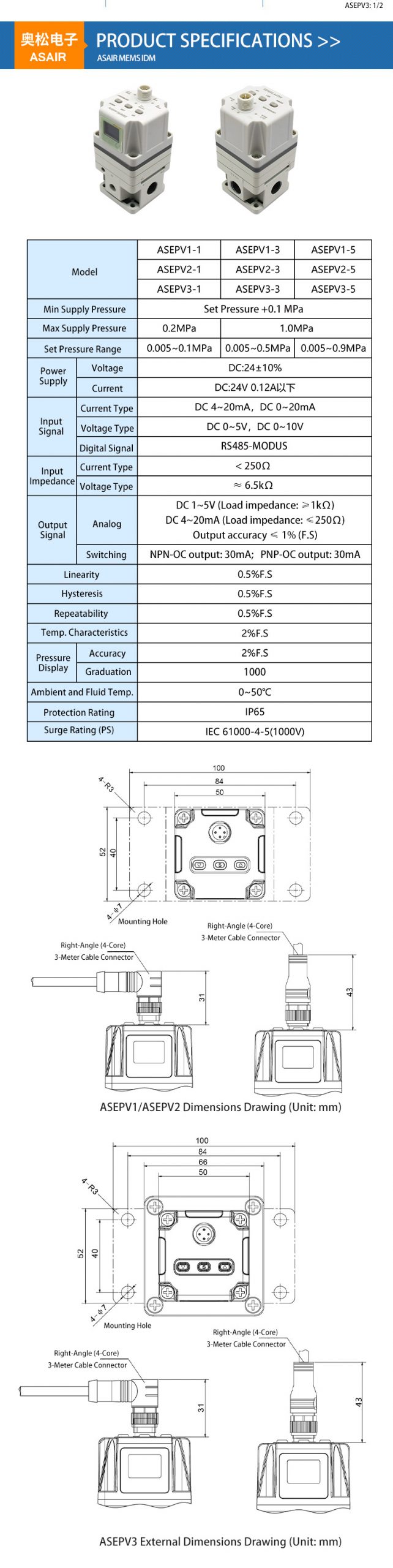 Home Transmitter ASEPV Series Electro-Proportional Valve ASEPV Series Electro-Proportional Valve 0.2% control accuracy Real-time display of actual output pressure. Flow output up to 3000 L/min 0.1MPa/0.5MPa/0.9MPaMulti-range Selection ASEPV SeriesDon't hesitate to e-mail us with any questions or inquiries, we should be happy to answer your qusetion.Please enable JavaScript in your browser to complete this form.NameEmail *SubjectMessage *Please complete the form and we will contact you within 1 business day.Get A Quote Now Category: Transmitter Description Primarily used for gas control in industrial and high-end equipment sectors. ASEPV SeriesDon't hesitate to e-mail us with any questions or inquiries, we should be happy to answer your qusetion.Please enable JavaScript in your browser to complete this form.NameEmail *SubjectMessage *Please complete the form and we will contact you within 1 business day.Get A Quote Now Related products ACP35 Series Pressure Transmitter TransmitterRead more AGH1 Series Temperature and Humidity Transmitter RH&T Transmitter, TransmitterRead more APM2300 Laser Particle Sensor TransmitterRead more ASERV2 Series Electronically Controlled Precision Pressure Regulating Valve TransmitterRead more